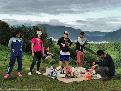 เราชิวชิวกันมาก ใครใคร่ถ่ายภาพก็ถ่ายไป ใครใคร่ดริปกาแฟ ก็นั่งดริปและดื่มกันไป คุณเกาขนชุดชงกาแฟแบบจัดเต็มมาครบชุด ขนมนมเนย มาม่ามีพร้อม